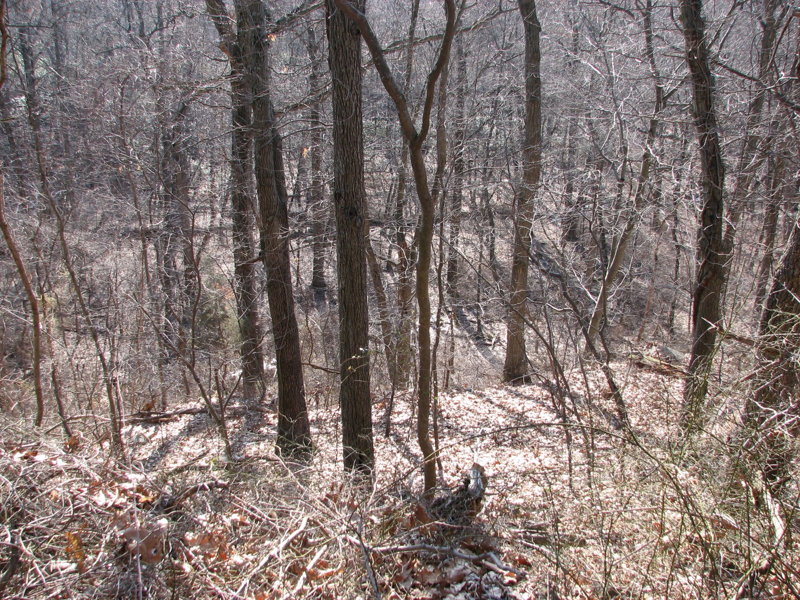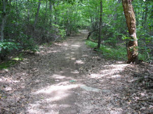 and walk down this fire lane, which heads into the woods and turns into