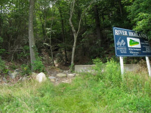 The western half of the Tall Farm open space consists of relatively level hayfields along the top of the Housatonic River bluff. There is a temporary Lacross field located off the end of Stowe Drive. The hayfields are harvested by a local farm under an annual license.