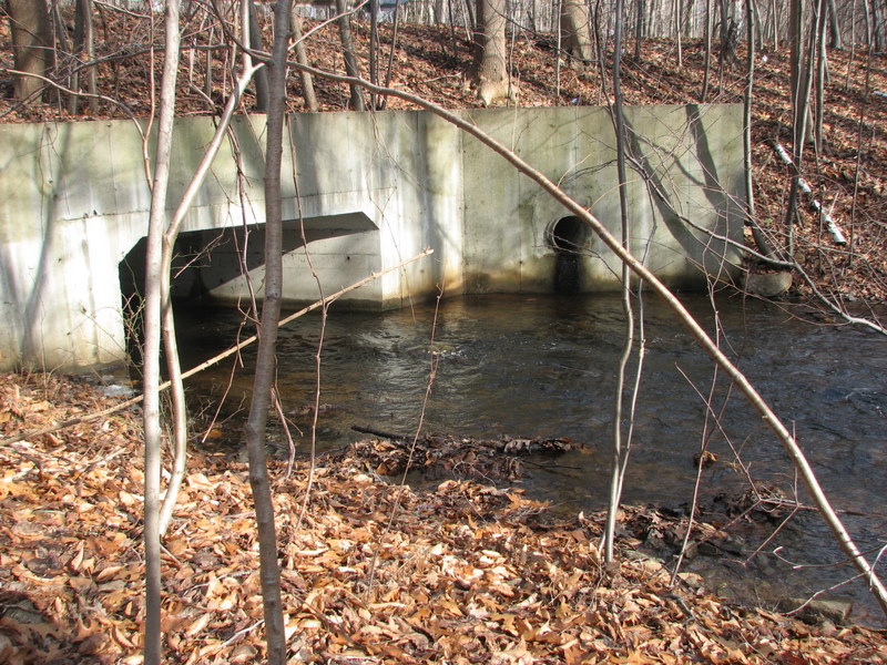 The brook flows through a box culvert under Canfield Drive.