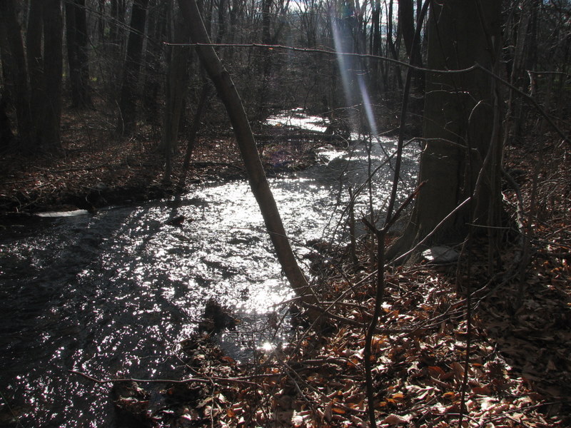 An unnamed brook flows from a swamp at Capewell Park south towards