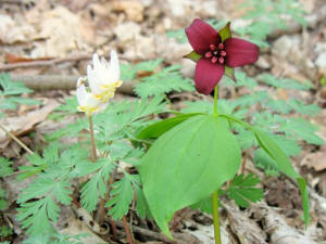 The sandy, well-drained riverbank soils and cool microclimate are home to many species of plants that are not seen in other parts of Shelton, including an unsurpassed spring wildflower display (Dutchman's Breeches, Red Trillium, Maidenhair Fern, and others). The sandy riverbank is highly prone to erosion, and new illegal ATV trails very quickly erode to a foot or more in depth.