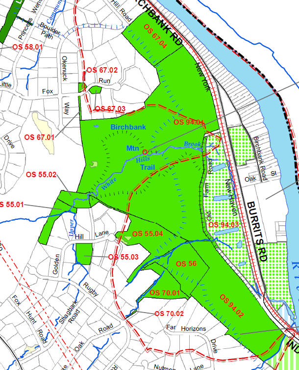 Birchbank Mountain is one of our largest and most rugged of our open space properties. The property rises up the river bluff about 250 feet from the railroad tracks along the Houstatonic River to the edges of the White Hills above. Upper White Hills Brook descends through a notch in the river bluff that was once a major route from the White Hills to the river below, used by both Native Americans and colonists.