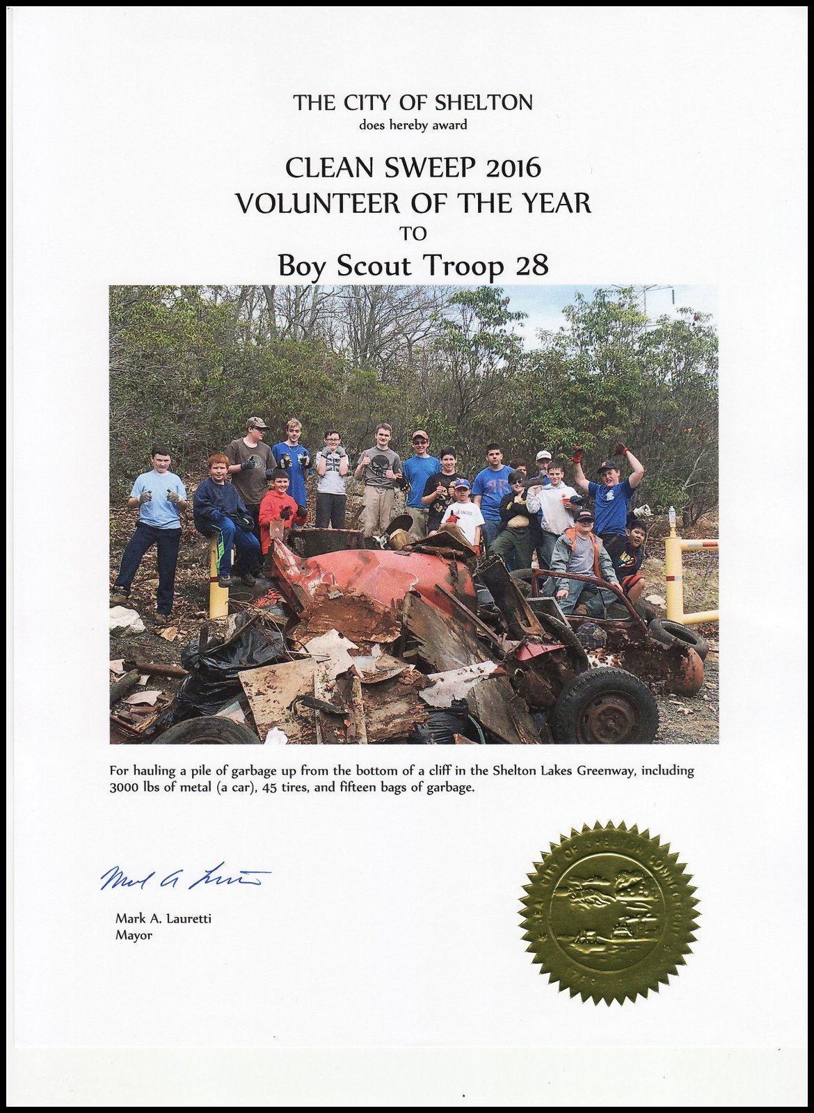 Troop 28 hauled out an enormous pile of scrap metal, tires,