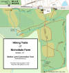 [TRAIL MAP (pdf)] This short but highly scenic trail provides river access to fishermen and nature lovers alike. The remains of an old mill dam greet visitors near the trailhead, and the trail follows the shoreline in an area that is covered with raging flood waters about once a year. The trail is level, but footing can be uneven. Access is from Mill Street, at the sign kiosk. Click thumbnail map to enlarge.