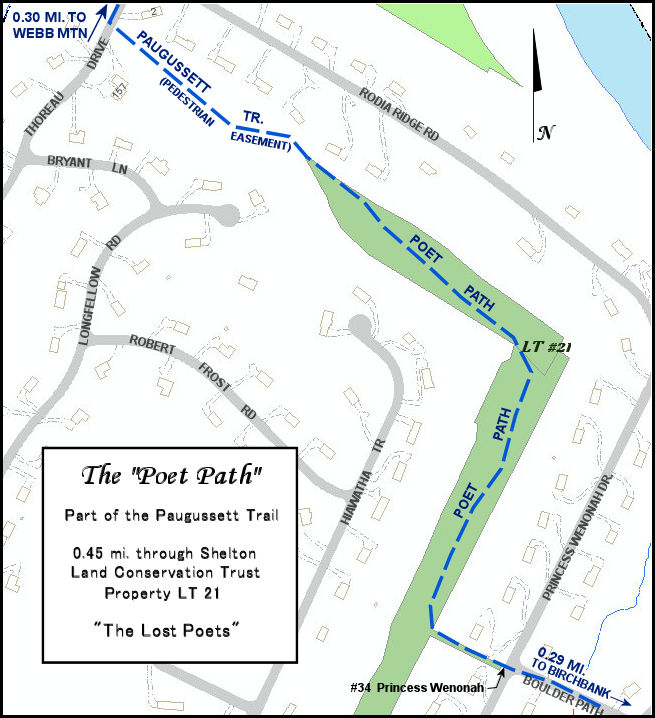 Background: The Paugussett Trail was a CCC project during the Great Depression and at one time stretched from Lake Zoar in Monroe all the way to Roosevelt Forest in Stratford. Some time prior to 1971, the trail south of Indian Well State Park was abandoned after it was cut off by new subdivisions, and the north end of the trail absorbed a reminent of the Pomperaug Trail in Monroe.